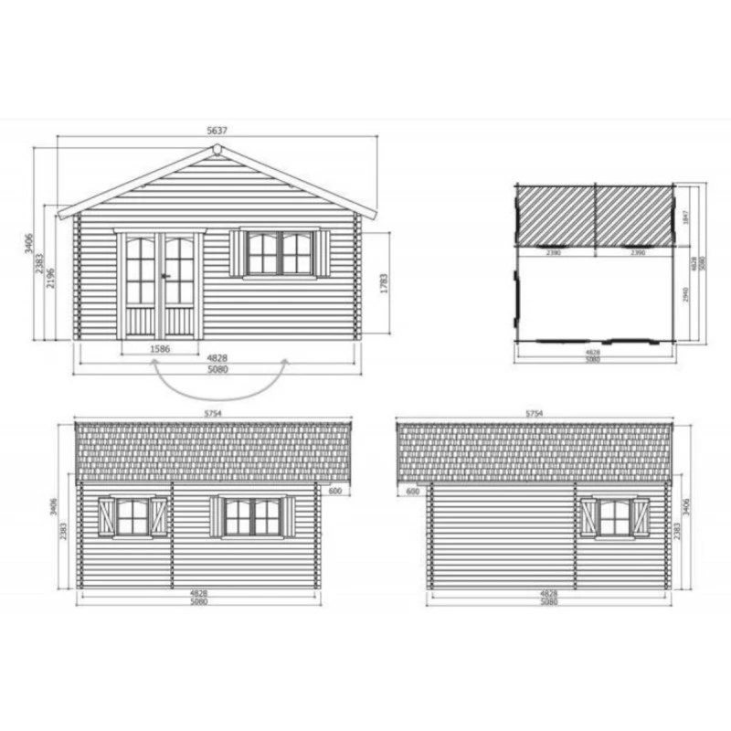 Abri De Jardin 25,81m² En Sapin Blanc FSC 40mm WEEKEND + Shingles Rouges – SOLID