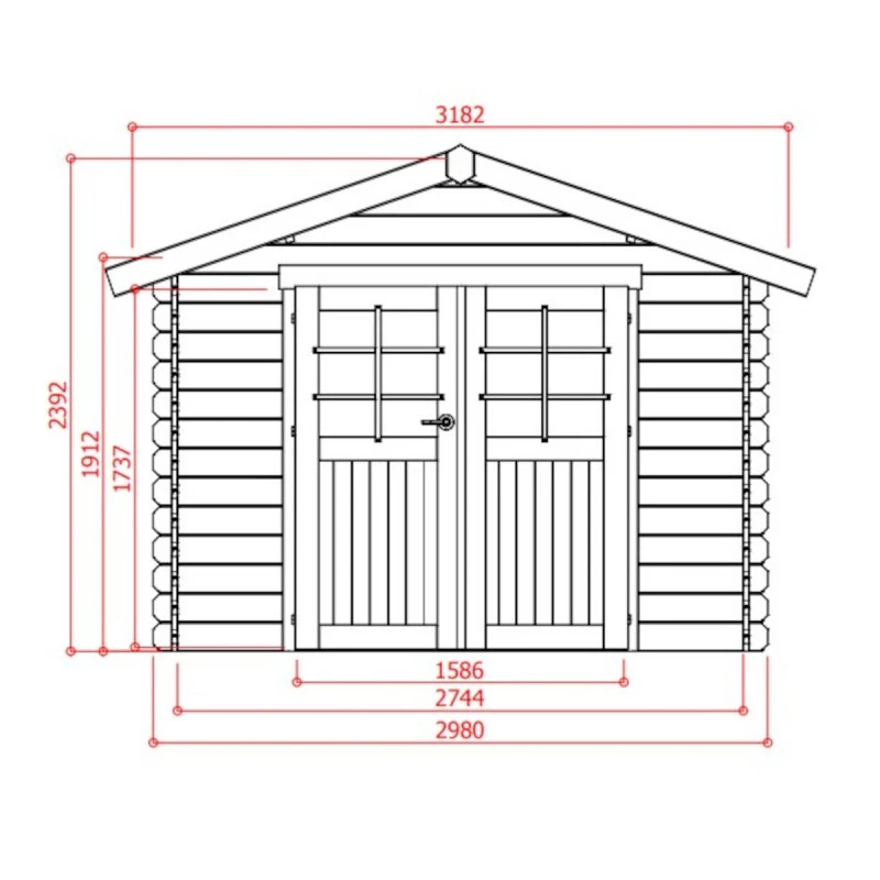 Les parois de base ont une hauteur de 191cm et la hauteur faîtière de la toiture à double pente est de 239cm. Les pans de la toiture sont en planchettes épaisses de 16mm, recouvertes d’un feutre bitumeux. Elle supporte une charge de neige de 75kg/m² et peut être recouverte de shingles adaptés à l’abri, disponibles en option en 3 coloris : vert, rouge ou noir. Quatre paquets sont nécessaires pour la couverture de l’abri Chartres. Le débord de toit de 39cm protège la porte des intempéries, mais il est néanmoins nécessaire d’huiler les ferronneries une fois par an. Garantie de 2 ans.