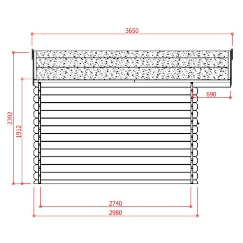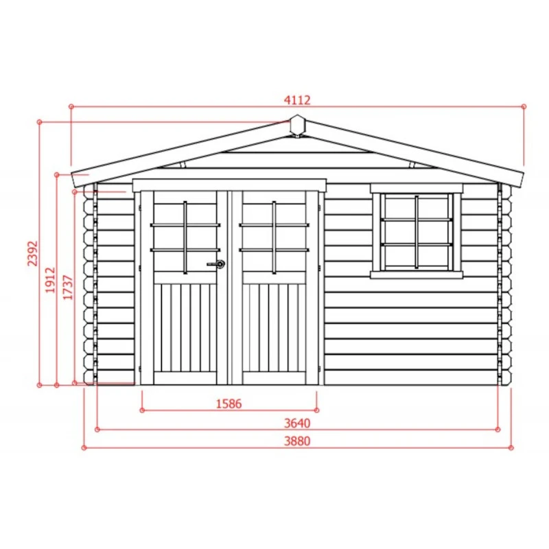 La surface est de 11,56m² pour une façade de 388cm et une profondeur de 298cm. Un débord de toiture de 69cm en façade protégera portes et fenêtres des intempéries. L’installation de l’abri doit se faire sur dalle de béton, à protéger de préférence de l’humidité du sol par une membrane étanche. Le montage est simple et rapide, et vous permet d’intervertir la double porte et la fenêtre pour correspondre à vos besoins.