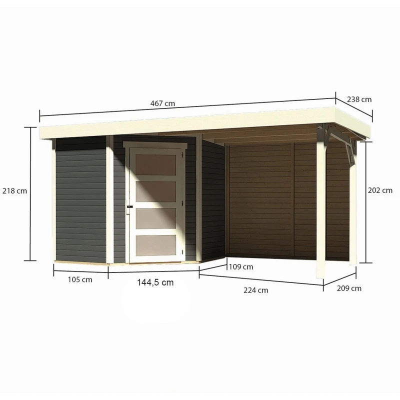 L’avis du spécialiste sur l’abri de jardin en bois massif gris terre 4,62m² Schwandorf 3 avec appentis 240cm et paroi arrière – Karibu :