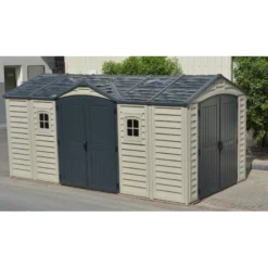 Abri De Jardin En PVC 11,2m² DECO Gris Foncé Et Blanc Grosfillex + Kit Ancrage Offert