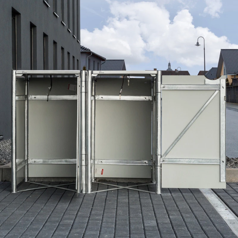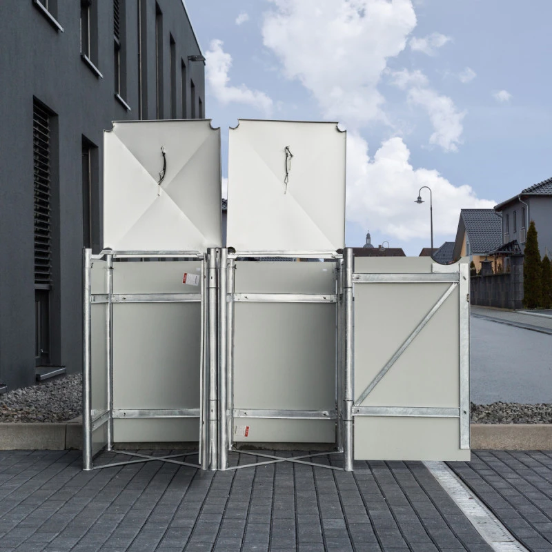 Les cache-poubelles Hide sont prévus pour une utilisation en extérieur. Ce modèle à double compartiment est doté d’un cadre en acier galvanisé à chaud et les parois sont en aluminium composite de couleur noire. Les matériaux sélectionnés lui assurent une très grande durabilité, une résistance exceptionnelle face aux intempéries et ne demandent aucun entretien spécifique.