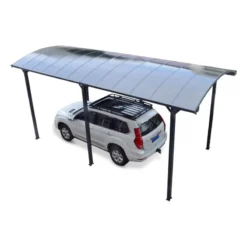 Ce petit carport 1 voiture en aluminium et toiture en polycarbonate protégera votre véhicule des intempéries.