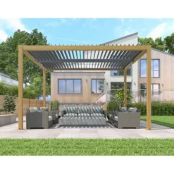 Pergola Bioclimatique En Aluminium Avec Lames Orientables Grises Anthracite TRAMONTO – DCB Garden