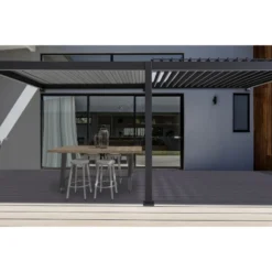 Pergola Bioclimatique Adossée En Alu Anthracite 3×5.3m Ombrea