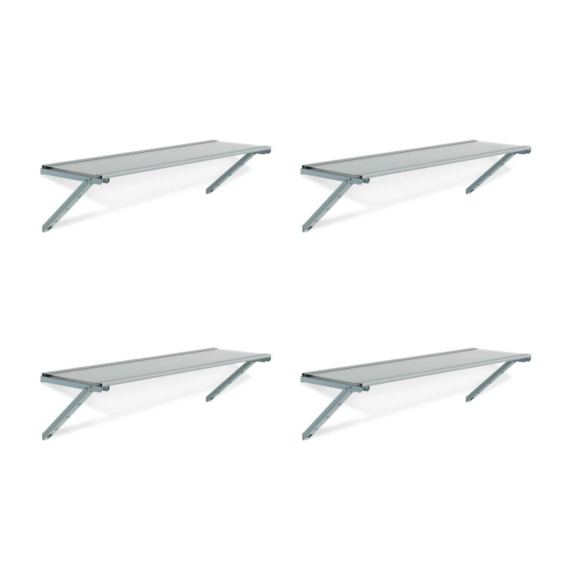 • Kit comprenant 4 étagères en polycarbonate avec profilés en alu, supports en acier galvanisé et quincaillerie nécessaire