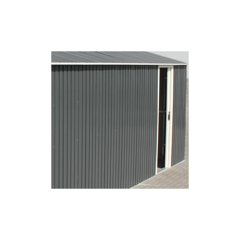 Dans la lignée de ses nouveaux abris en métal anthracite Duramax propose ce garage en métal dans cette même teinte, très moderne, et qui s’accorde parfaitement avec tout type maison (pierre, brique, bois…).