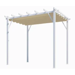 Pergola 100% Aluminium Coloris Blanc 12m² Avec Toile D’ombrage Ă©cru 140gr/m² HABRITA