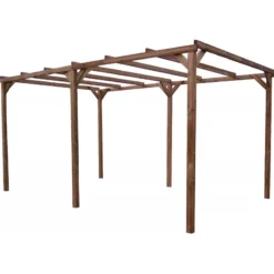 Pergola En Bois Avec Ventelles Amovibles Sur Toiture + 1 Côté 340x360x217cm Veneto