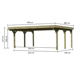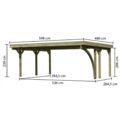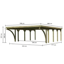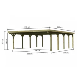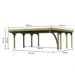 Carport Double En Bois Autoclave 28,3m² Avec Poteau En Arc Et Toit En Acier – KARIBU