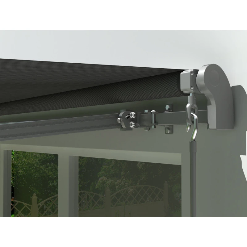 Le bras articulé, véritable colonne vertébrale du store extérieur rétractable est conçu en acier galvanisé très résistant lui permettant de résister aux multiples agressions extérieures. La barre frontale, le rouleau ainsi que les supports sont quant à eux en aluminium. L’ensemble des éléments sont recouverts d’une peinture anthracite pour une association parfaite avec la couleur également anthracite de la toile.