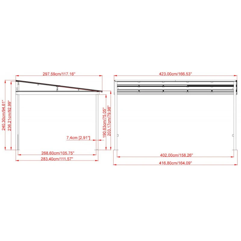 • Dimensions hors-tout : 424x296x240cm